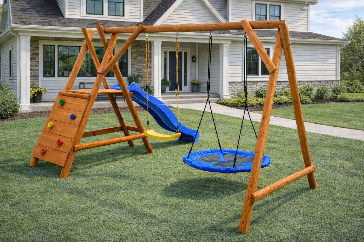 ‼️UWAGA‼️ Aukcja dotyczy zestawu W DREWNIE SUROWYM, DO SAMODZIELNEGO IMPREGNOWANIA! Na innych aukcjach zestaw dostępny jest z opcją impregnacji na wybrany kolor oraz w różnych konfiguracjach akcesoriów. Zdjęcia mają charakter poglądowy i przedstawiają różne warianty produktu - sprawdź i wybierz najlepszy dla Ciebie!