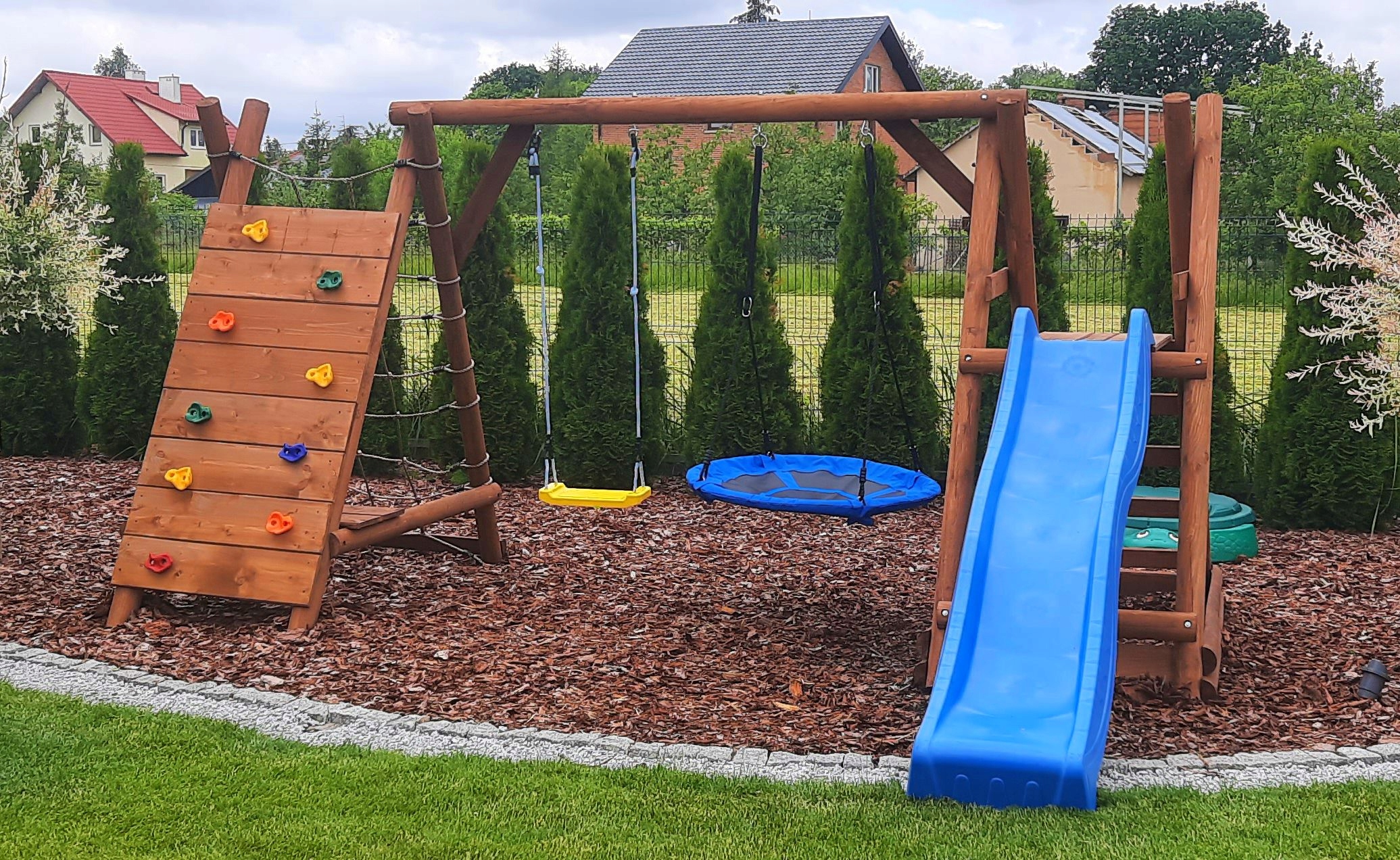 ‼️UWAGA‼️ Aukcja dotyczy zestawu w wariancie z impregnacją, na innych aukcjach zestaw dostępny jest również w drewnie surowym, do samodzielnego impregnowania oraz w różnych konfiguracjach akcesoriów. Zdjęcia mają charakter poglądowy i przedstawiają różne warianty produktu - sprawdź i wybierz najlepszy dla Ciebie!