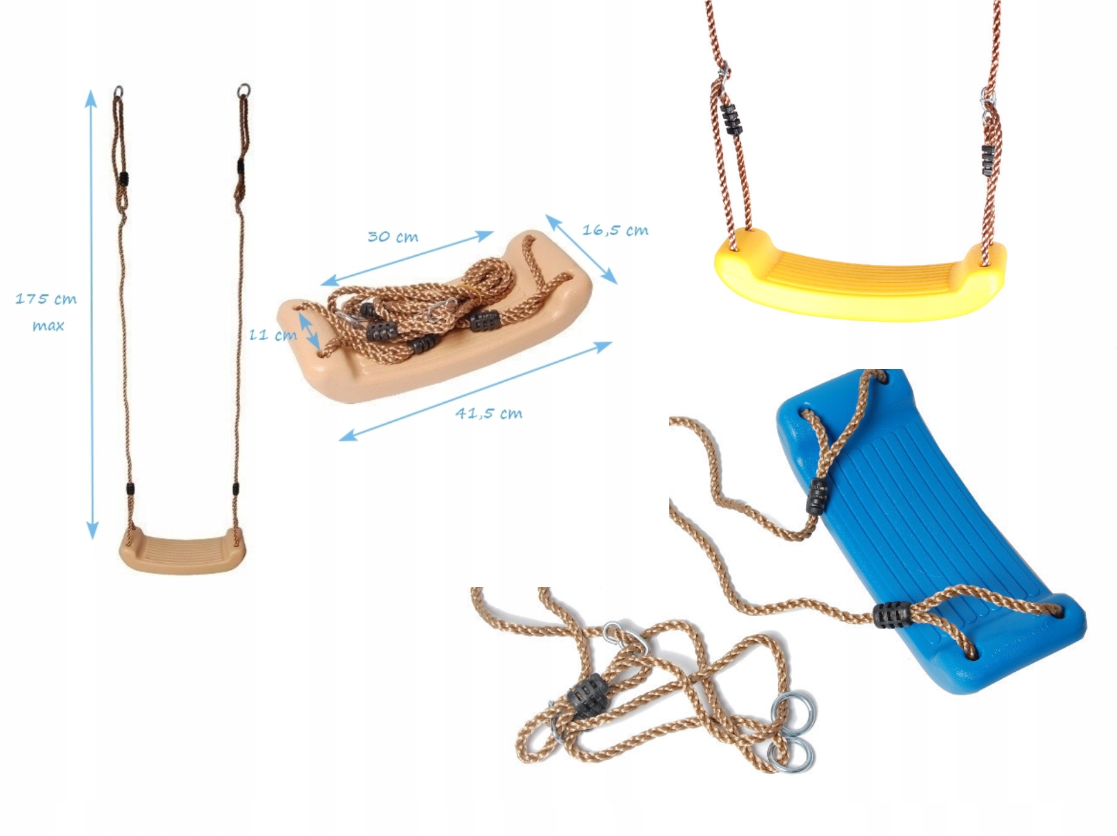 ☑️ 2 x HUŚTAWKA PŁASKA PLASTIKOWA REGULOWANA - udźwig do 50 kg, możliwość wyboru koloru huśtawki (zielony, czerwony, niebieski, żółty)