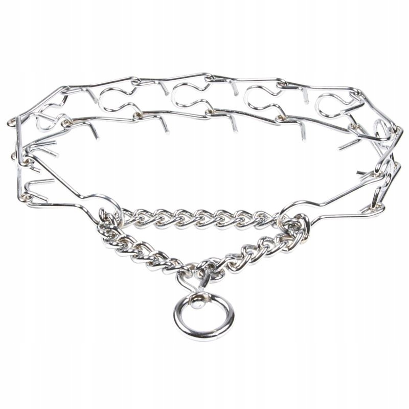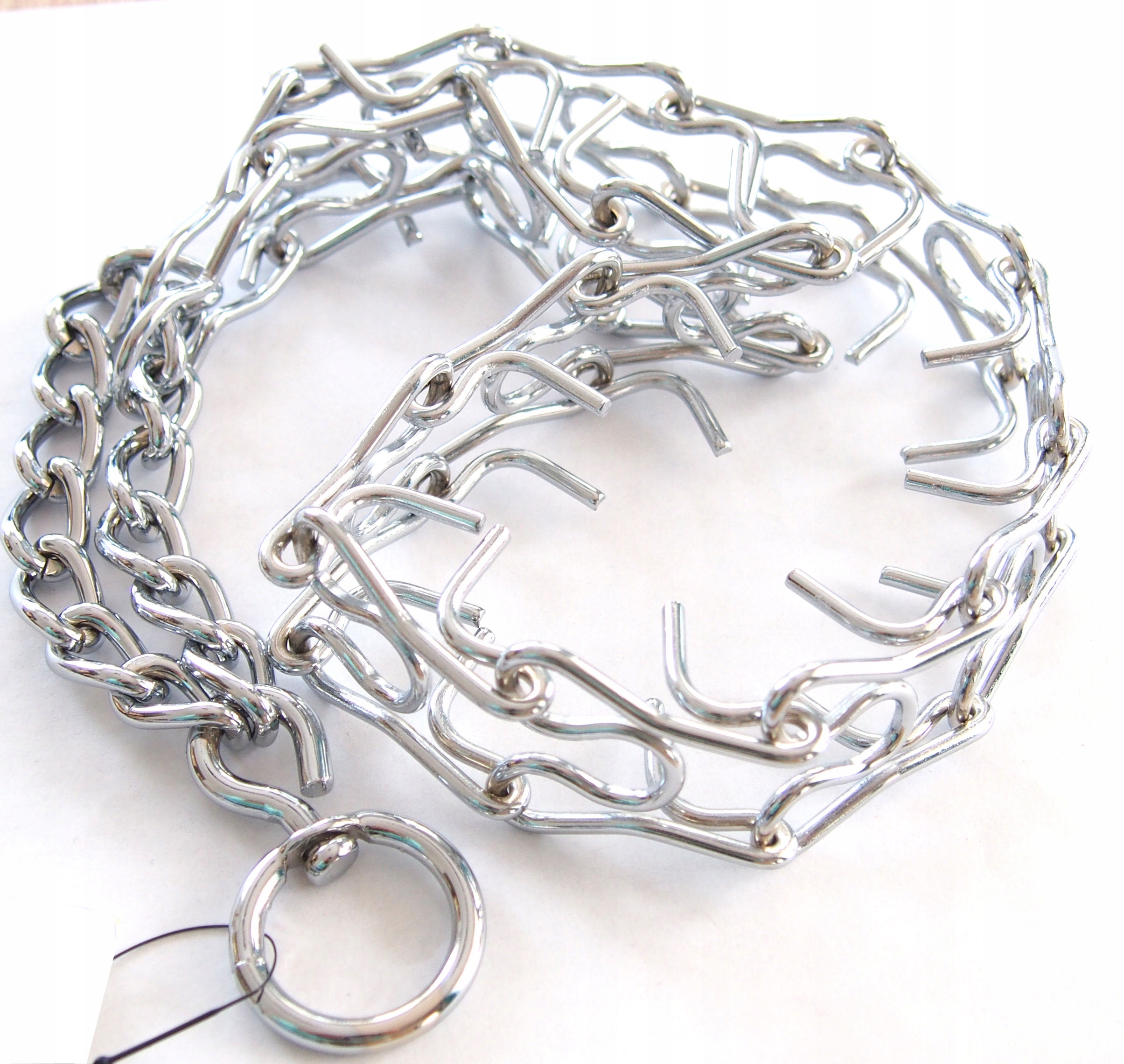 Popularna obroża typu „kolczatka” , o budowie łańcuszka, którego ogniwa zakończone są wystającymi, tępo zakończonymi końcami drutu.