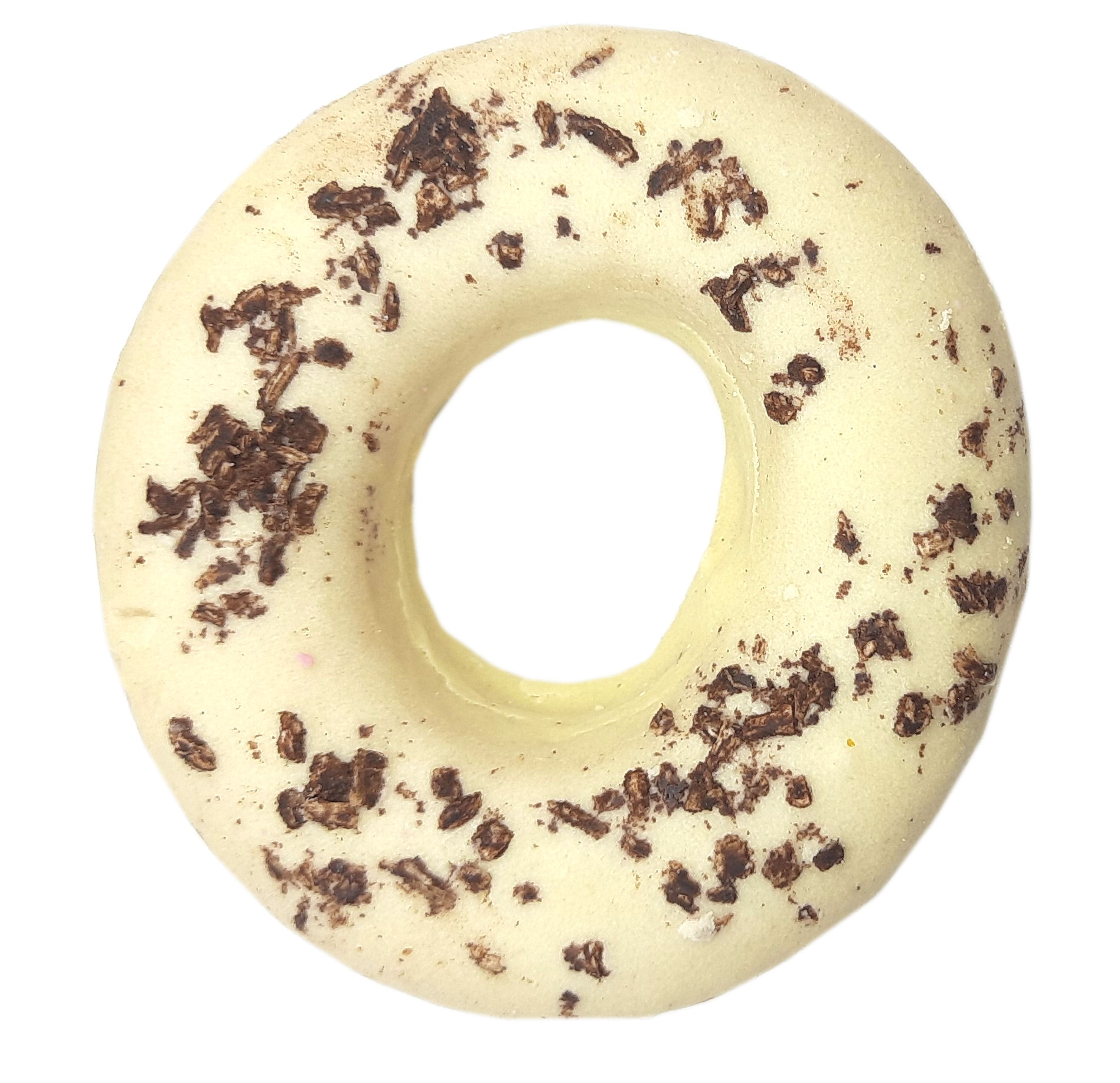 Donut waniliowy: Skład: mąka pszenna, mąka kukurydziana, tłuszcz roślinny palmowy, produkty jajeczne suszone, tłuszcz roślinny rzepakowy, odtłuszczone mleko w proszku, cukier. Dodatki sensoryczne: naturalny aromat waniliowy (2 mg/kg). Dodatki technologiczne: konserwanty.